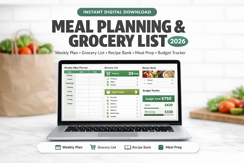 Households that plan meals weekly spend 20-25% less on groceries and waste significantly less food. The savings on a $5.99 template pay back in the first shopping trip.