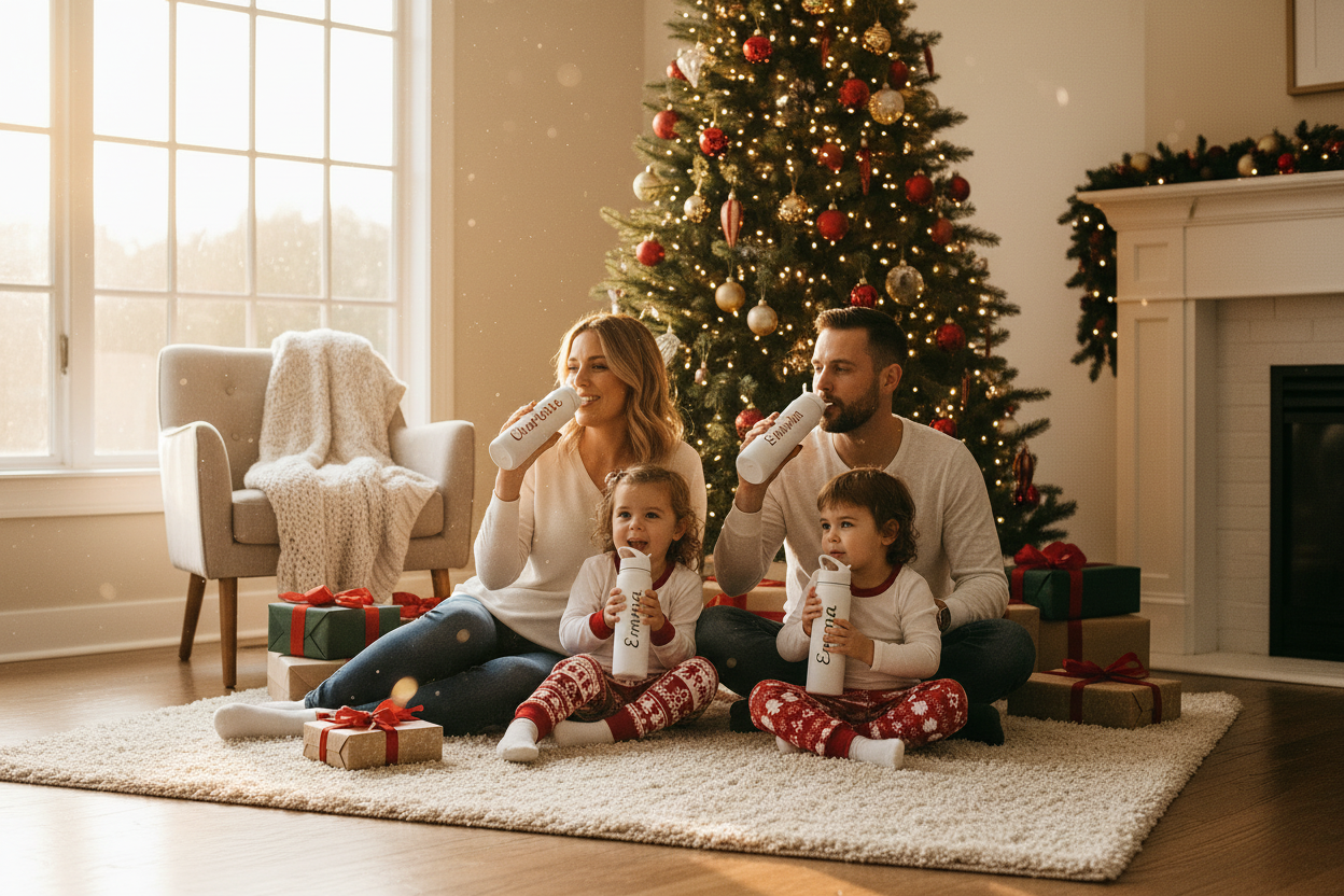 Celebrate the season in style with a custom holiday water bottle that brings festive flair to every sip. Choose vibrant Christmas colors and personalized fonts to craft a gift as unique as the person receiving it. Thanks to our permanent sublimation printing, your design stays vivid and beautiful through countless uses—no peeling, no fading, just lasting quality. Whether you're gifting bridesmaids, groomsmen, or holiday party guests, this practical bottle doubles as a keepsake they'll treasure long after the tinsel comes down.